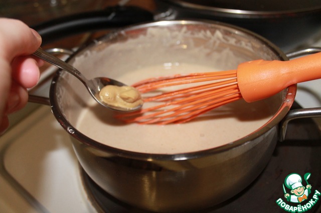 Добавляем горчицу. Хорошо перемешиваем и накрываем крышкой.