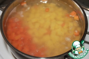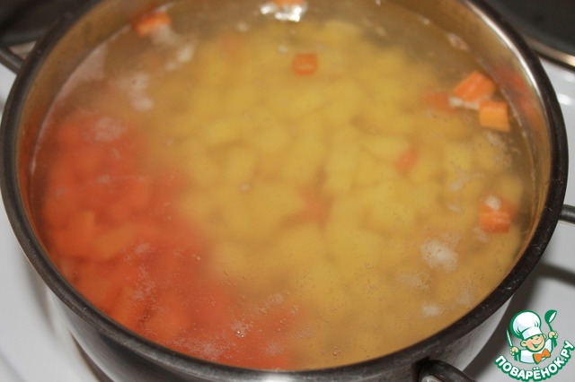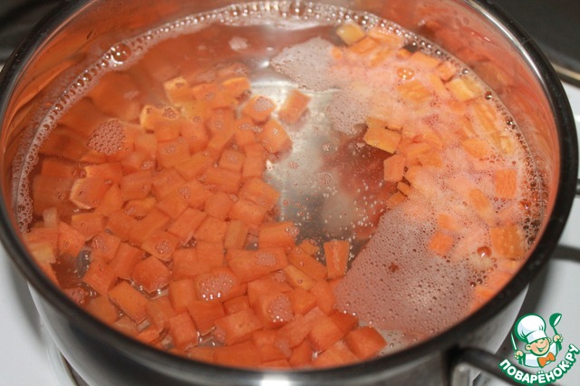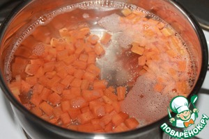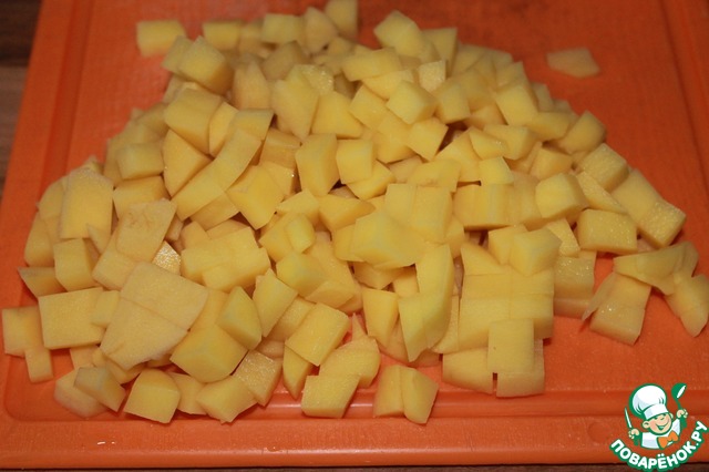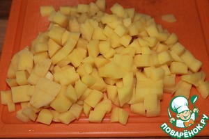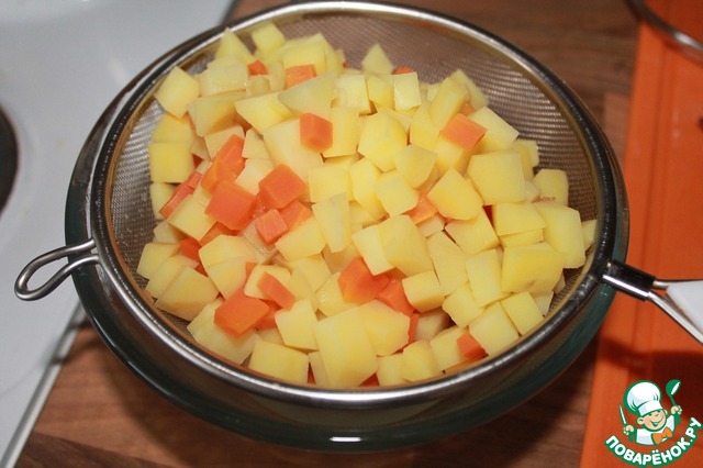 Сырые картофель и морковь очищаем, нарезаем кубиками.