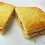 7. Картофельный слой смазываем разведенной томатной пастой.