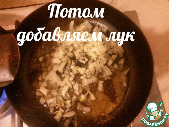 Шаг 7. Потом добавляем лук. Не забываем мешать.