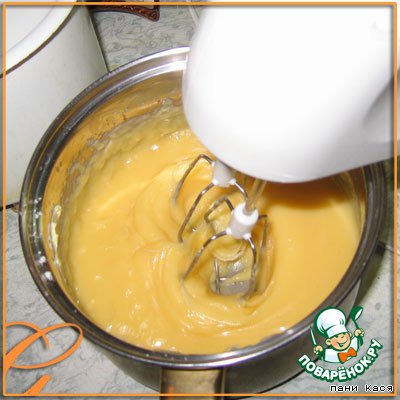 Взбиваем молочный крем с маслом (получается жидковатый крем, не пугайтесь, так и нужно)