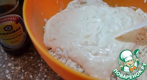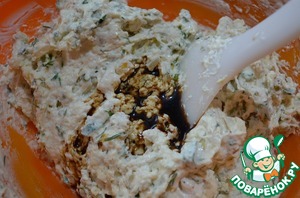 Выложить к сухой массе сметанно - сырную массу, перемешать. -