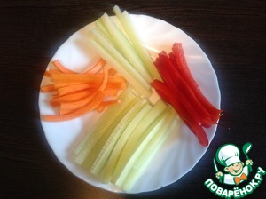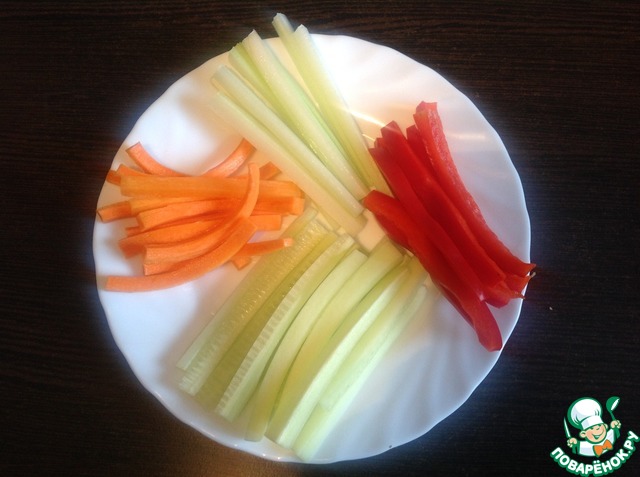 Овощи помыть, почистить и нарезать длинными брусочками.