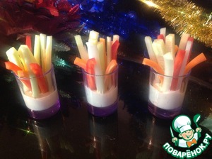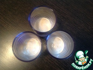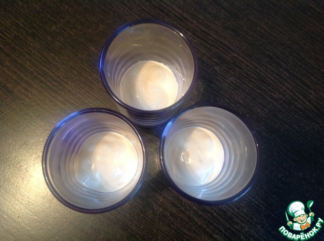Порционные стаканчики наполнить соусом на 1/3.