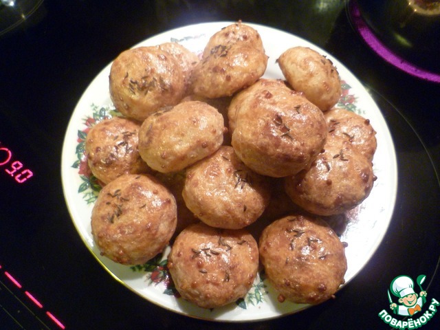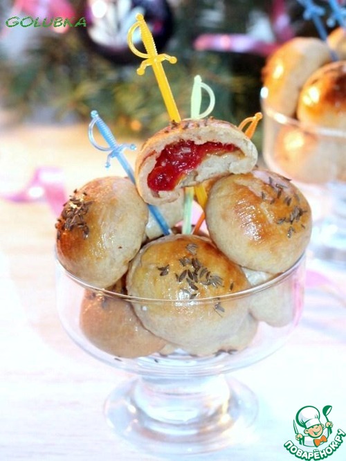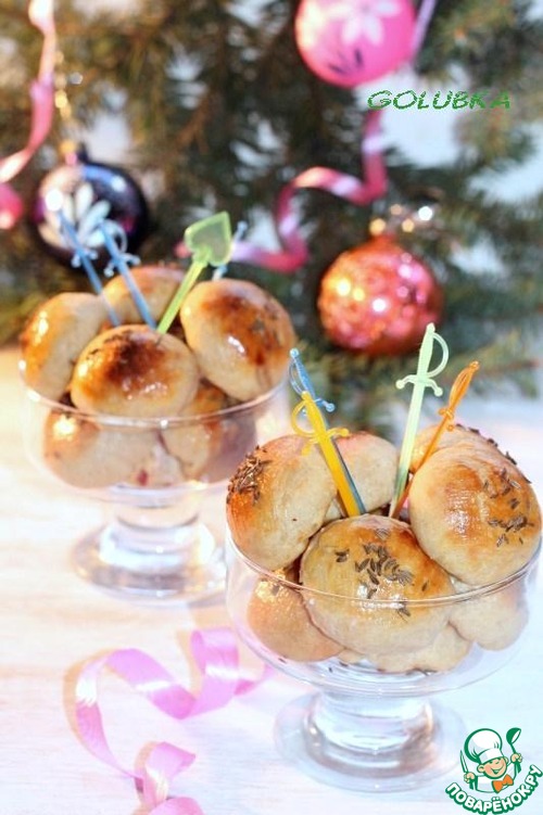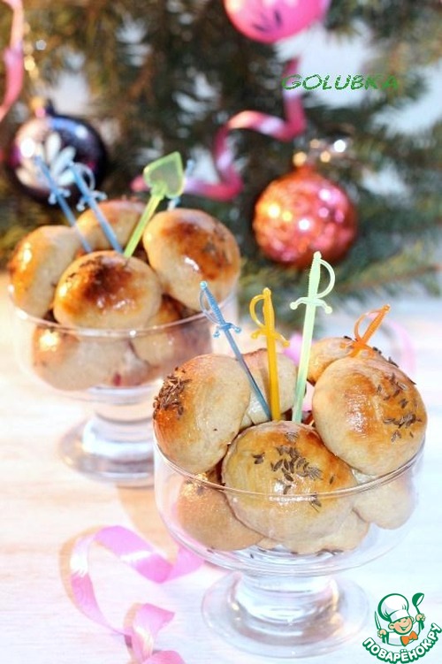 Вкусная закуска в виде маленьких булочек с начинкой. Вкус булочек сырный, куриный, пряный, не слишком острый.