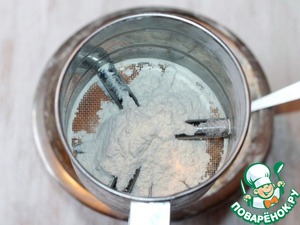 5. Выкладываем массу в миску, добавляем частями просеянную муку.