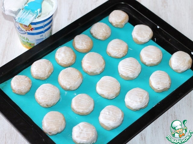 9. Укладываем заготовки мини булочек на застеленный силиконовым ковриком противень.