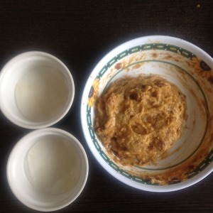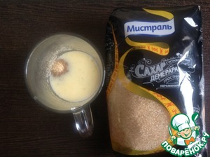 Смешать оливковое масло с тростниковым сахаром Демерара, добавить половину слегка взбитого яйца и как следует размешать.