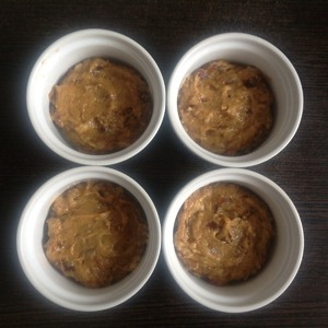 Формочки запаковать в фольгу и поставить в духовку, разогретую до 180 градусов, на двадцать пять минут до готовности пудинга.