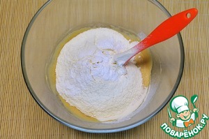 Добавить муку и разрвхлитель. Замесить однородное тесто. |
