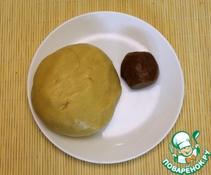 Отделить от теста не большой кусочек ( немного больше грецкого ореха) и смешать с какао. Тесто убрать в холодильник на 20-30 минут. |