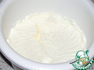 Миксером взбиваем масло с сахарной пудрой, добавляем творожный сыр и продолжаем взбивать до гладкой и слегка пушистой структуры.