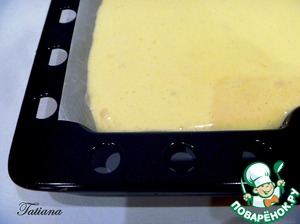 Бисквитный пласт понадобится размером (30*30 см.), в зависимости от размера противня, воспользуйтесь ограничителем (с запасом,33*33 см.)