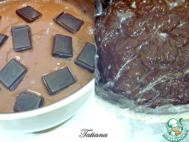 В горячий пудинг добавьте поломанный горький шоколад, размешайте до однородной, гладкой массы.