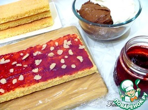 Каждую полосу бисквита смажьте тонким слоем горячего клюквенного конфитюра.