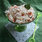 3.дайте салату немного настояться,ну пару часов. А то сразу после приготовления, салат кажется очень солёным. И настоявшись,майонез впитается в крабовые палочки, и "исчезнет",это очень улучшит вкус.