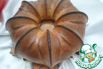 Готовый кекс охладить 10 минут в форме, затем - на решётке. Охлаждённый кекс посыпать сахарной пудрой.