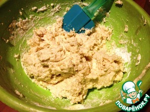 Ввести просеянную с разрыхлителем муку. Перемешать.