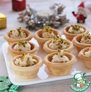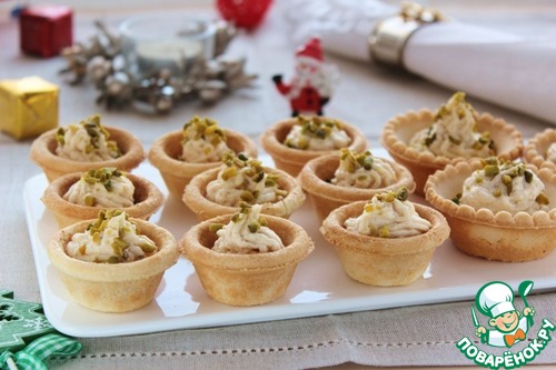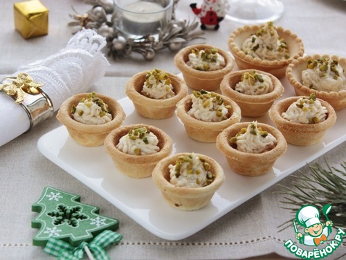 Я пошла другим путем, выложила сыр в готовые тарталетки. -