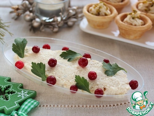 Оставшийся сыр выложила в плоскую форму, оформила брусникой и зеленью.