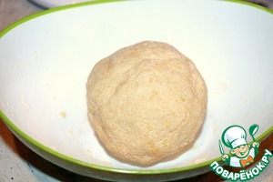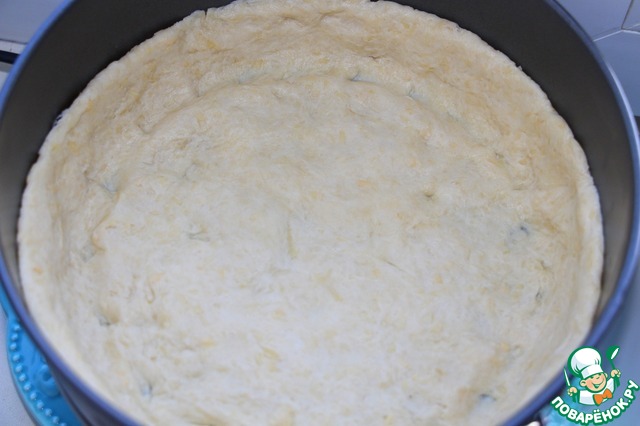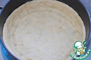 Тесто раскатать в пласт толщиной 0,5 см, выложить в смазанную маслом сковороду, образуя бортики.