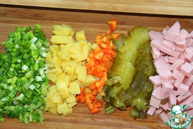 Ингредиенты для «Киш "Оливье" из сырного теста»: