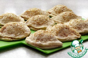 А когда наступит тот самый час Х, достаём брешаны, раскладываем их на противень застеленный пекарской бумагой, даём пол часа на разморозку и отправляем в разогретую до 200С духовку на 15-20минут.