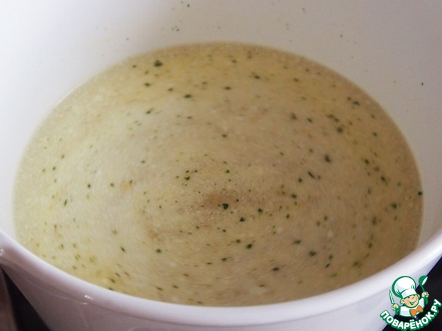 Вскипятить литр воды, добавить кубик овощного бульона или, если у вас есть готовый бульон, используйте его.