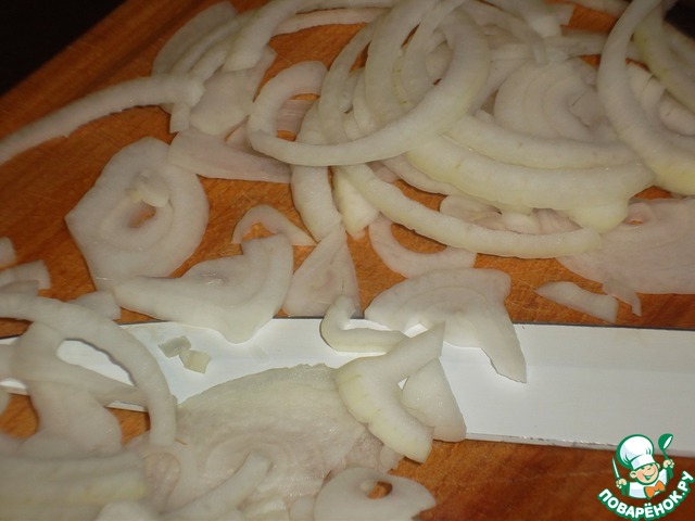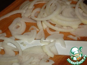 Лук очистить и нарезать тонкими полукольцами.