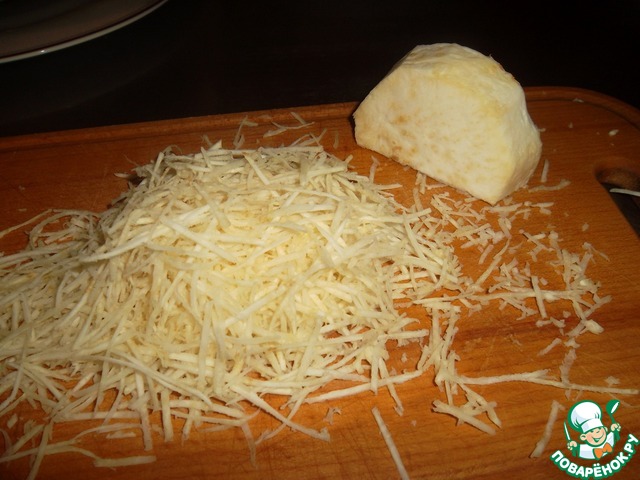 Корень сельдерея натереть на терке для корейской моркови.