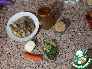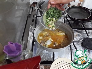 Отделяем от бульона 2 стакана для каши. Добавляем крупу и варим до готовности.