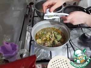 в кипящую воду выкладываем мясо, солим, перчим, и варим до готовности мяса.
