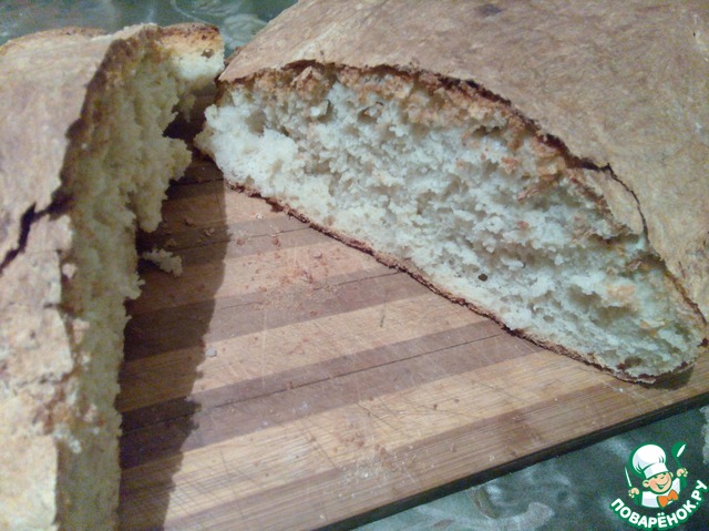 • Часа через 1,5-2 (мы любим зажареный хлебушек) достаем из духовки. Это разрез горячего хлеба, (надо же срочно снять пробу горячей корочки)
