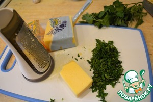 Сыр натираем на терке - чем больше, тем лучше (рулеты будут сочнее). Зелень мелко рубим.