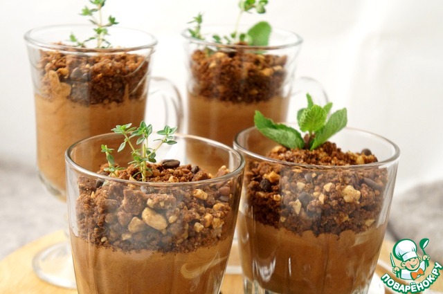 Предлагаю удивить своих гостей, подав им с кофе горшочки с рассадой) Им наверняка понравится такой шутливый десерт, ведь на вкус это нежное шоколадно-кофейное удовольствие с хрустящей крошкой.