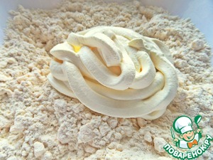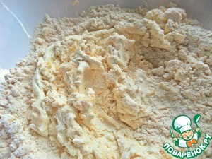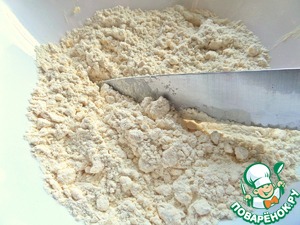 Масло или маргарин прямо из холодильника покрошить в просеянную муку (пока муки 280 г). Я держу для этих целей недорогое сливочное масло 68%.