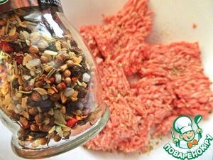 Переходим к фаршу. Выбираем приправы, которые и Вам приятны и не вызовут недовольства у гостей. Я брала полюбившиеся смеси из меленок. Одна "Смесь для мясных блюд"...