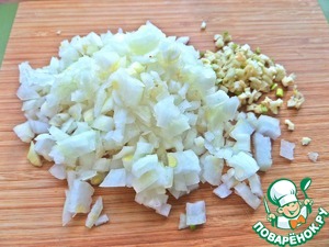 Лук, чеснок измельчить.
