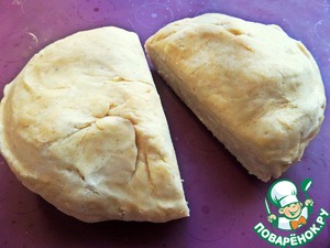 Тесто достать и поделить пополам или раскатать целиком, если рабочая поверхность позволяет.