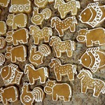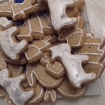 Тесто раскатать в пласт толщиной 5-6 мм, выемками для печенья вырезать фигурки.