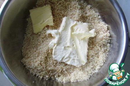 Крекер измельчаем в блендере в импульсном режиме в крошку, не в пыль!