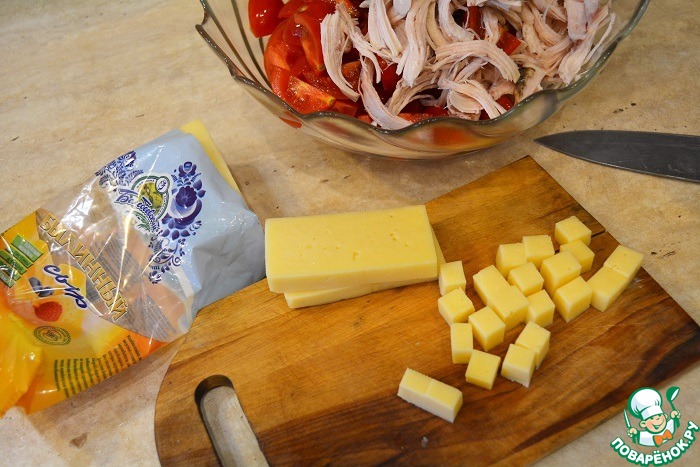 Сыр режем кубиком