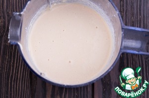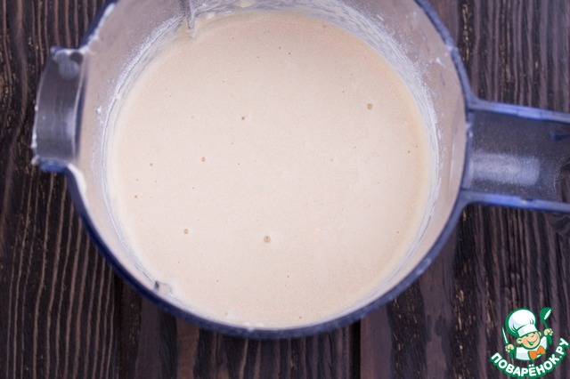 Добавить просеянную муку и хорошо перемешать миксером до однородности.