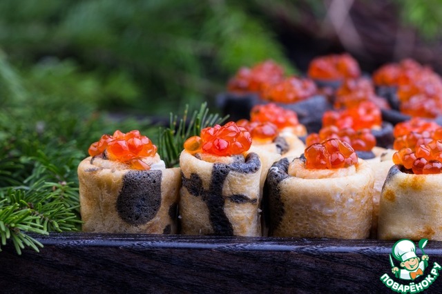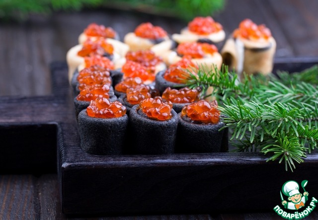 Черные блины с икрой