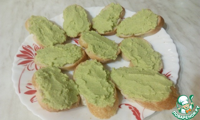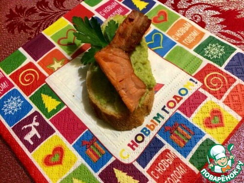 Теперь осталось намазать багет муссом и украсить форелью. Я еще для украшения использовала петрушку.