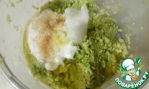 Делаем мусс. У авокадо удалить косточку и кожуру. Режем кусочками и кладем в процессор. Сразу поливаем лимоном и прокрутим в процессоре. Теперь добавляем сметану, чеснок, соль, оливковое масло. Все взбиваем до однородности. Как я уже говорила, мне очень нравится сочетание рыбы с кисловатым авокадо. Если вы не любите кислинку, то лимоном чуть-чуть взбрызнете авокадо, чтобы не потемнело, для этого хватит и чайной ложки.