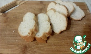 Багет нарезаем. Для тех, кто любит его можно подсушить в духовке или на сковороде. Я не стала этого делать.