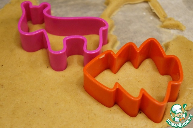 Остатки теста снова раскатать, вырезать фигурки животных, ёлочек, человечков и т. д.