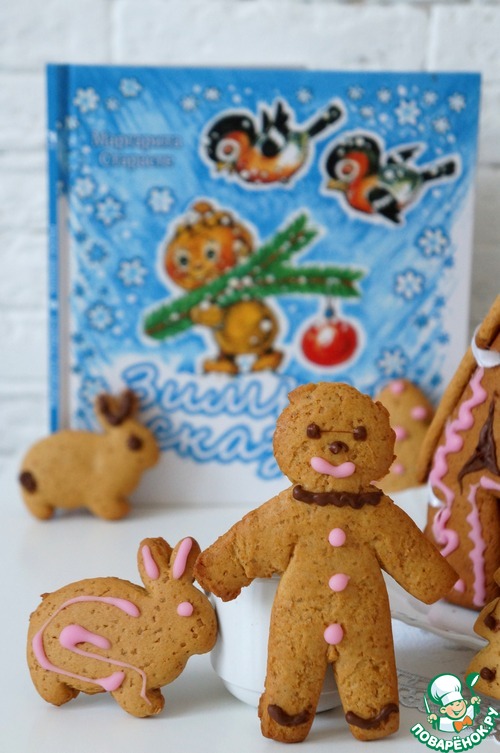 На выпечку пряничного домика и фигурок меня вдохновила одна из любимых книжек моего сына про Хрустика -пряничного человечка. Раскатывали тесто, вырезали фигурки, раскрашивали их вместе с сыном, сколько же удовольствия ребёнку от самого процесса! Прекрасное вкусное занятие для зимних каникул)