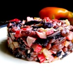 Моя мама делает этот салат и в будни, и в праздничные дни. Попробовав однажды, мой муж часто просит меня повторить его. Получается очень вкусно. Прошу к столу, отведать пару ложечек!